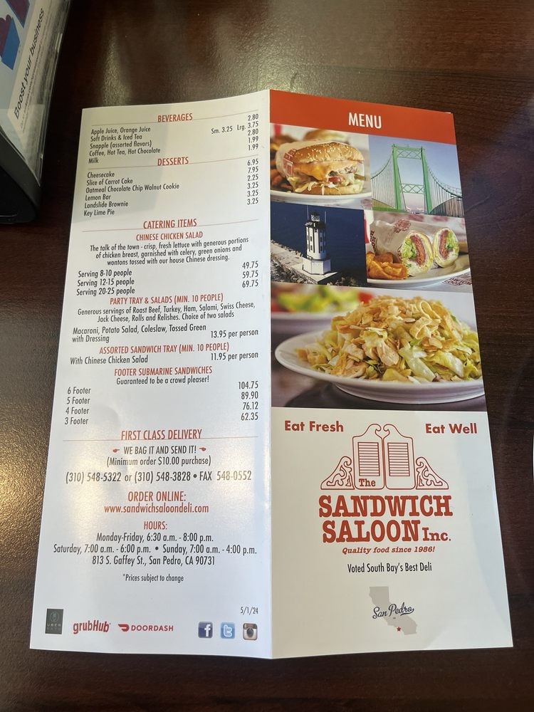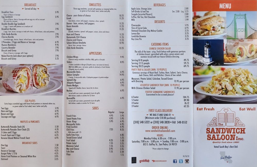 The Sandwich Saloon is a diverse restaurant offering an array of options from breakfast burritos to hearty sandwiches. Located in San Pedro, CA, this establishment provides a cozy ambiance with free Wi-Fi, TV, and gender-neutral restrooms. Customers rave about the flavorful dishes, such as the carne asada salad and Italian Deluxe sandwich. The menu also caters to vegan and vegetarian preferences, making it a versatile choice for all diners. With excellent service and a clean environment, The Sandwich Saloon is praised for its accommodating staff and generous portions. Whether you're looking for a quick lunch or a satisfying dinner, this spot is a top choice for delicious sandwiches and wraps. Try the California Club or the Turkey Bacon Avocado sandwich for a delightful dining experience.